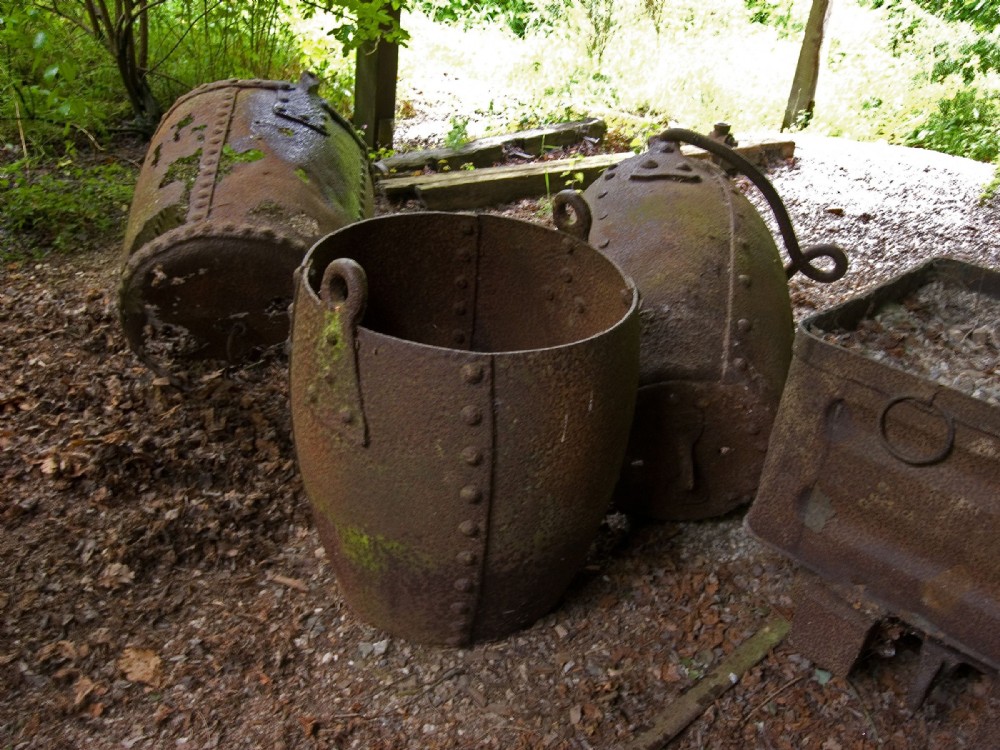 Kibbles and wagons at the Upper Works where barites from Perkins Level were crushed and processed.