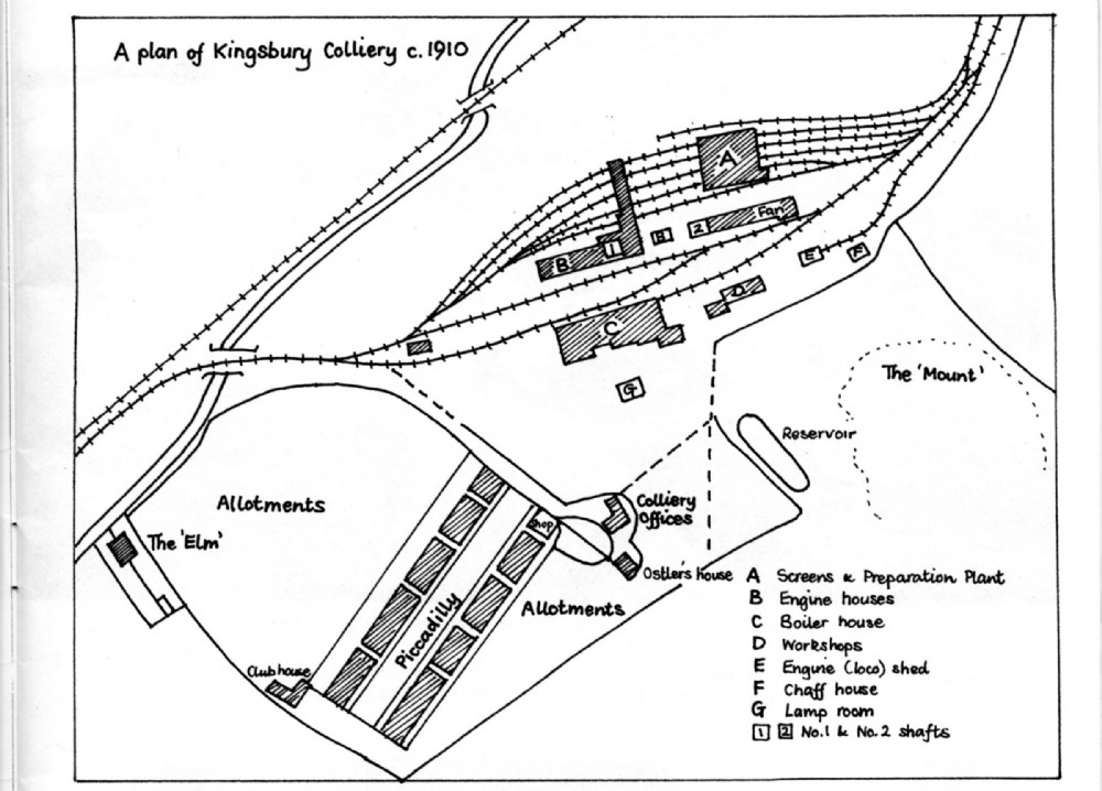 Plan made by, and copyright, Carol Haines, 1999 for the Kingsbury Colliery book. Reproduced here with kind permission.