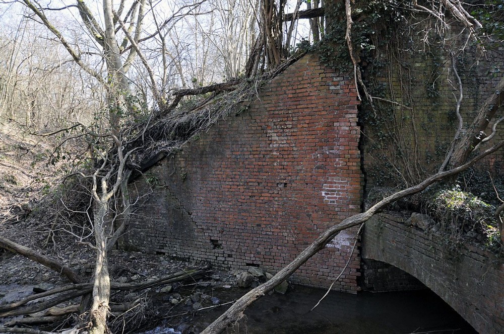 Remains of the railway bridge at the foot of the incline on the Kinlet Colliery branch near its junction with main Billingsley Colliery branch line.