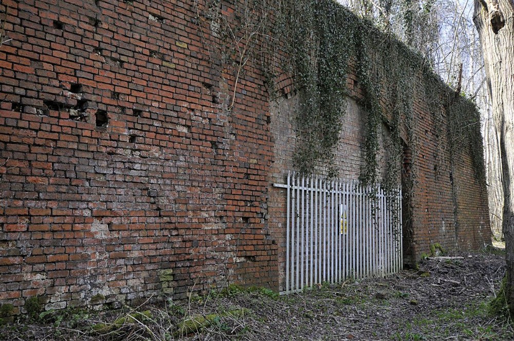 Bricked up and secured entrance to the main winding shaft in the screens building on the North side of the large horizontal winding engine house.