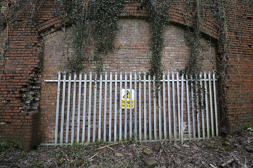 Bricked up and secured entrance to the main winding shaft in the screens building on the North side of the large horizontal winding engine house.