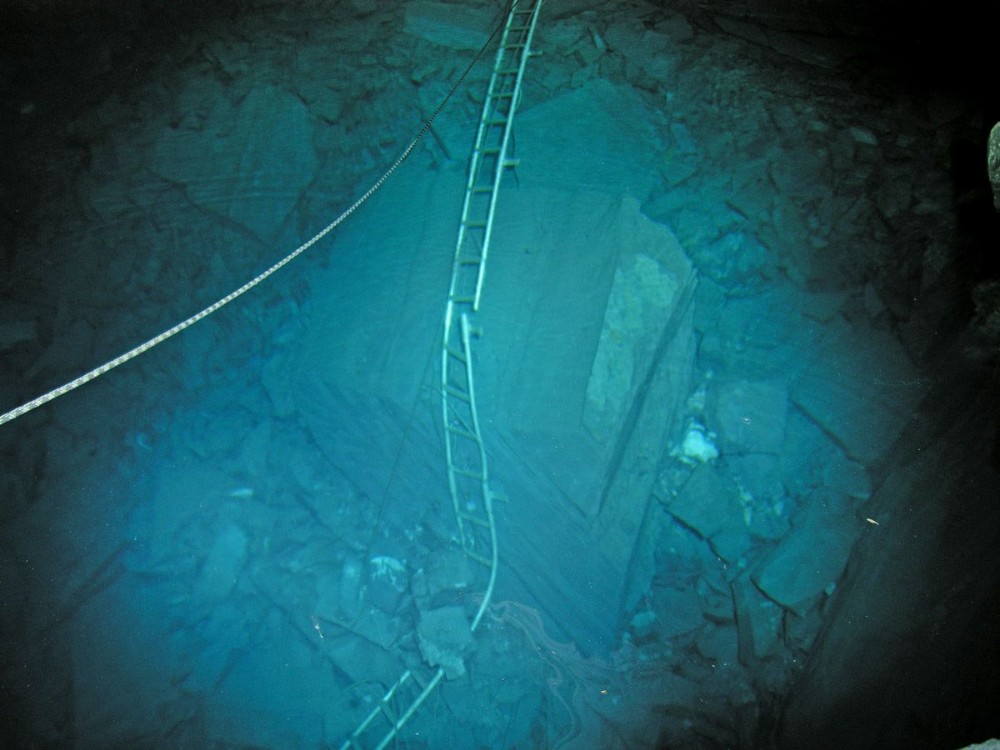 The rock pinning the ladder bridge is presumably the cause of the problem...