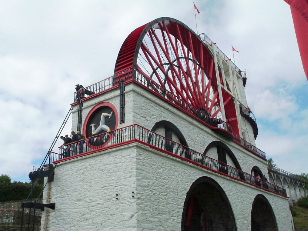 The Triskelion is visible on the front of the wheel. However it is backwards; this happened by accident when transferring the image on to the wall, they forgot to reverse the image so it is actually a mirror image of the authentic Three Legs of Mann