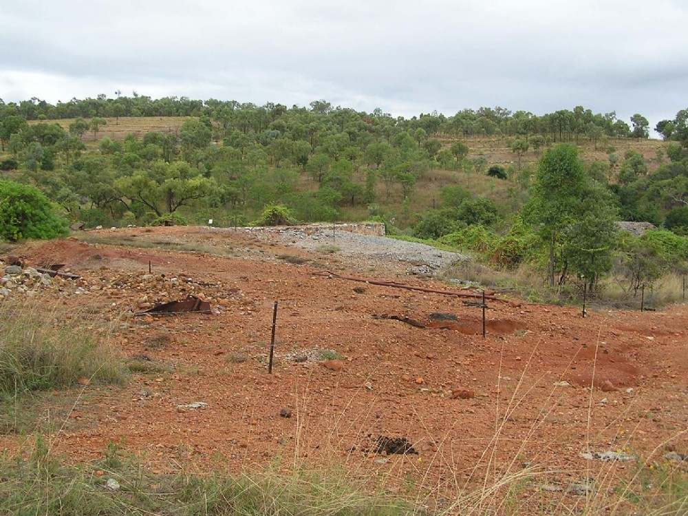 A view across the Lady Jane site, looking south. Rehabilitated waste dump from the Red Dome mine in the background.