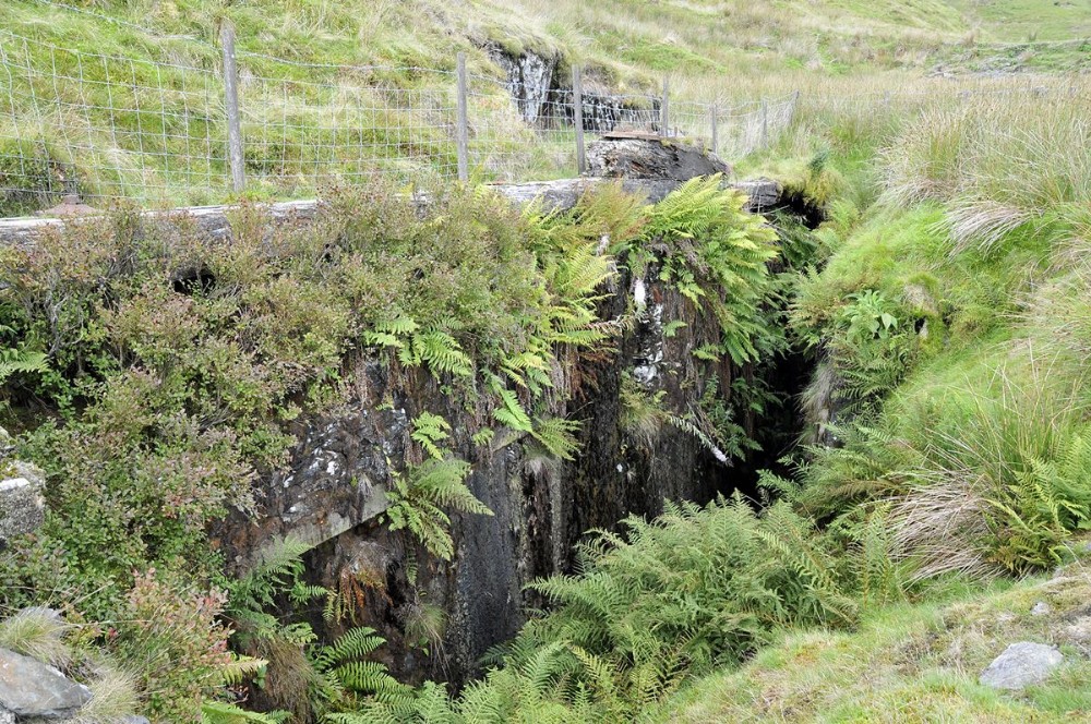 Large waterwheel pit, used for the 60ft waterwheel (replaced c1900 by a 56ft wheel by John Mills & C0 Llanidloes) for pumping at Engine shaft (in the background). In the 16 years since the last visit the wheel pit has been fenced off and is more overgrown.