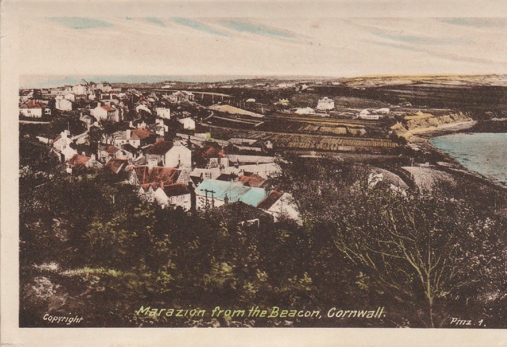 I collect postcards, this one shows a part of my bit of Cornwall, the view of Marazion looking east from the Beacon, the big house is now Chymorvah Hotel recently in the news when the couple who run it turned away a gay couple! The gays had the backing (financial) of the gay community, the couple who run the hotel only their savings! The "launder" could just be a strip of vegetation and some conveniently placed telegraph poles! (I remember when I worked on the Mount, we wondered what the strip of red was in a field out this way, Lady St Levan told us it was red Gladioli!)