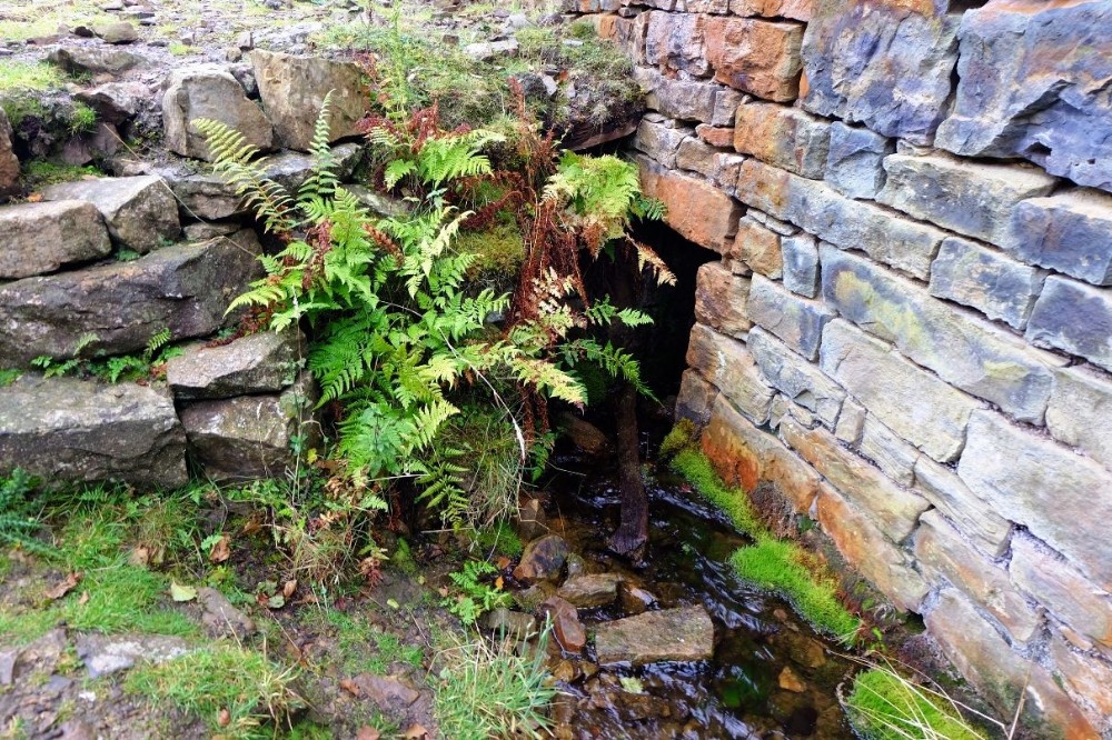 The water from the adit leads along this leat and through the wall. I am not sure where it emerges, but there is a flow of water near the ruins of a possible mill building