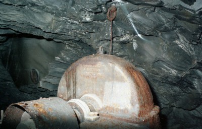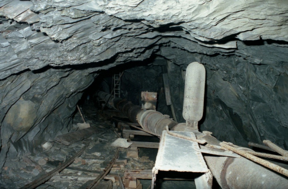 Looking southwards, in the distance is the ladder down into the level from the channelled "slot"