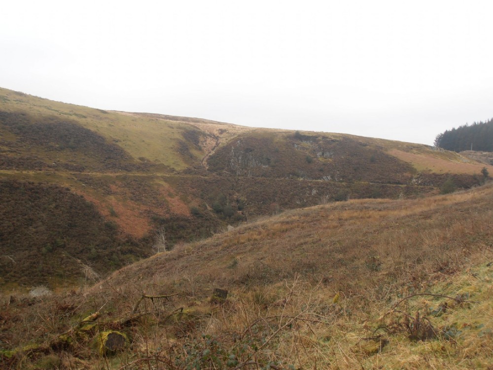The leats from Pendam. The higher leat curves around the hillside at top left.