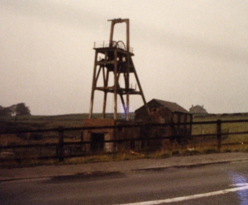 Taken only a year or so after the rest of the pit was demolished & the muckstack levelled. The unusual concrete headgear was left in place to suspend pumps, to control water levels. Shuttle-eye & Caphouse were still working at this time.