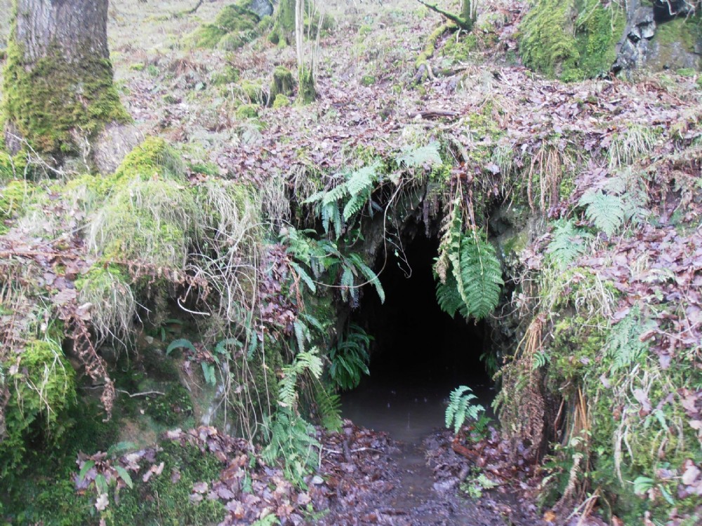 Upper Adit portal - knee deep in water. There used to be another adit which connected to this on the same level - the blocked portal can be traced some 20 yards along the hillside, and the other side of the blockage reached from inside here.