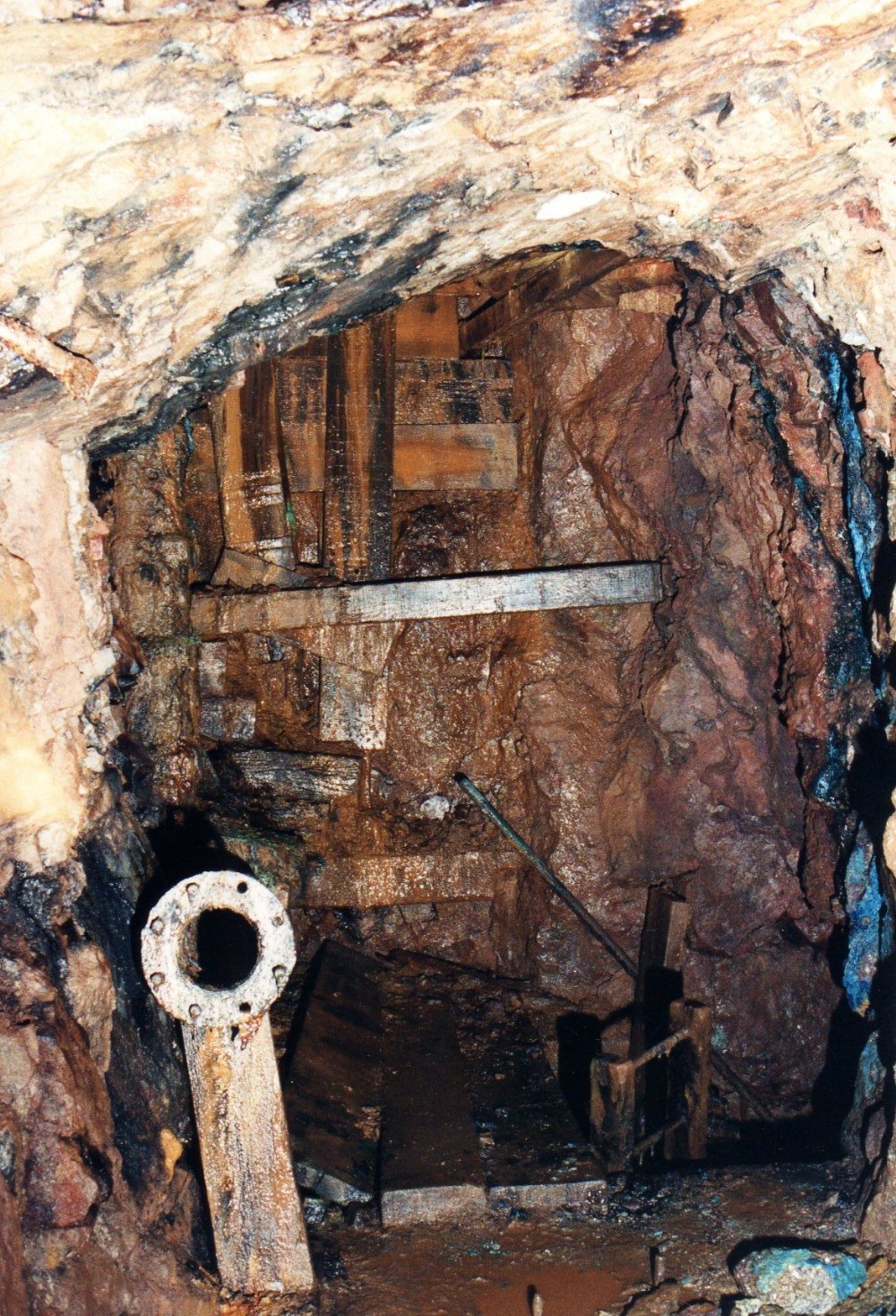 Levant Engine Shaft at 180fm level (Geevor 14 level). Note top of ladder, and pipework.