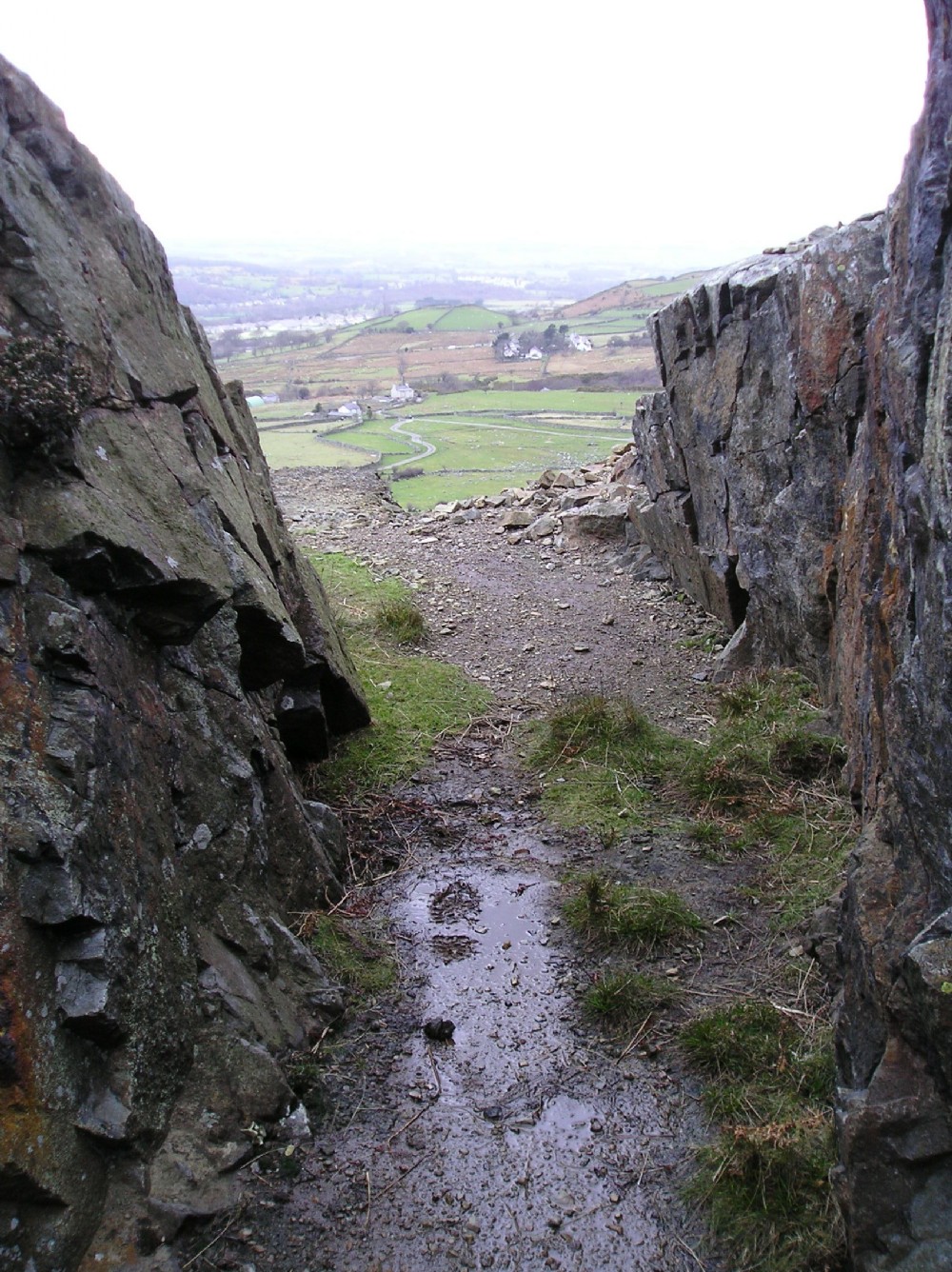 Looking out of workings, Pen y Gaer can be seen in the distance.
