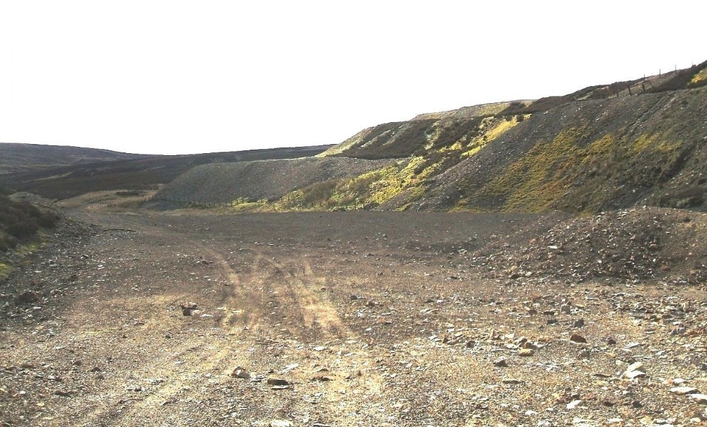 Large cleared area alongside the tips with only broken bits of tramway rail here and there.