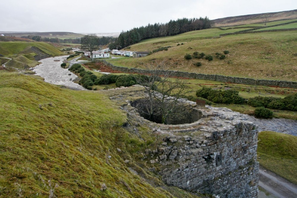 The top of one of the kilns, showing the pot where the layers of limestone and coal were loaded.