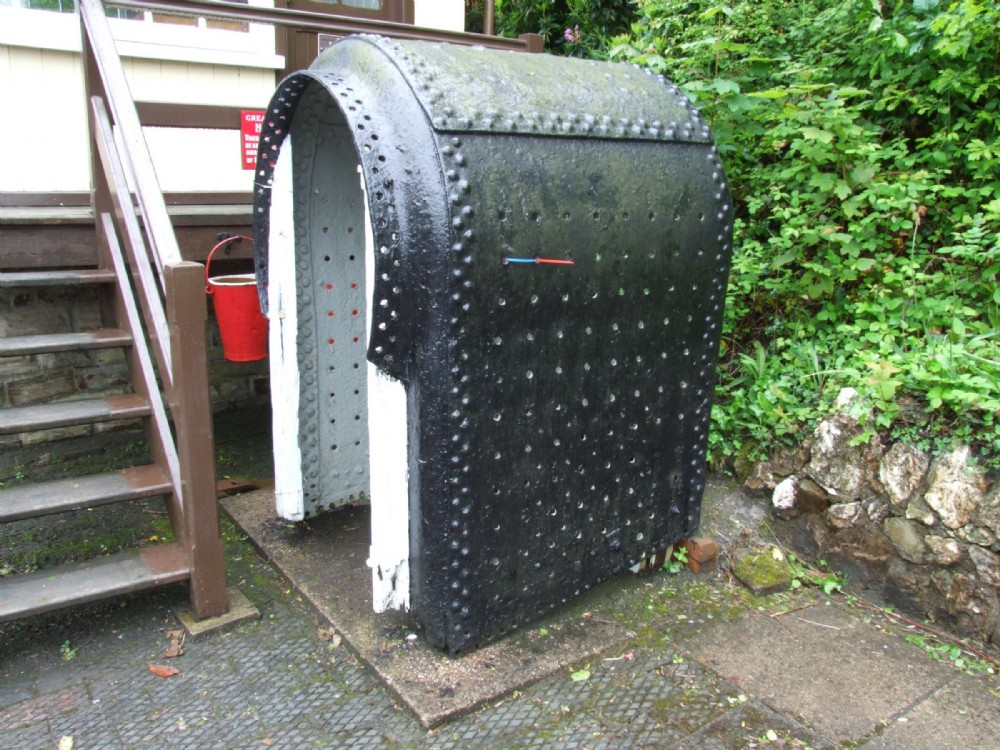 Caradon`s firebox. Caradon 0-6-0st locomotive built by Gilkes Wilson & Co arrived during 1862. Scraped 1907, This firebox was used as a toilet at Moorswater, and was rescued by The Great Western Society and is now on display at Bodmin Genral Station 17-05-07.