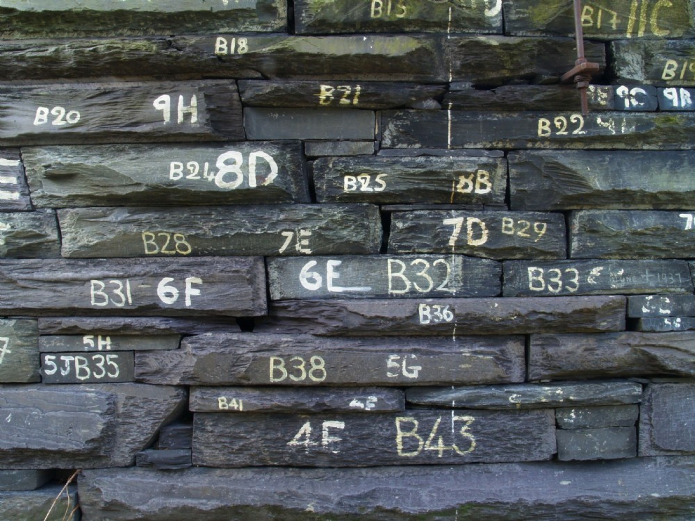 The numbering of stones to enable the dismantling and re-assembly of the old lift from Hafod Owen, Dinorwic.