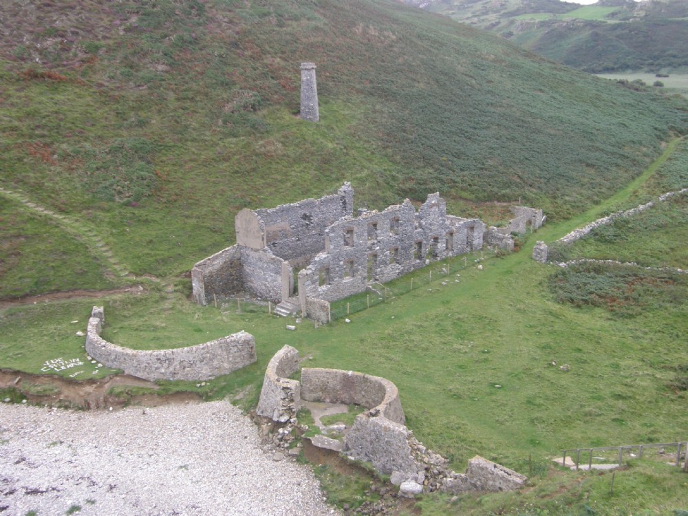 a set of buildings with a large chimney but no real evidence of working - some small overgrown diggins nearby and possibly silica extraction