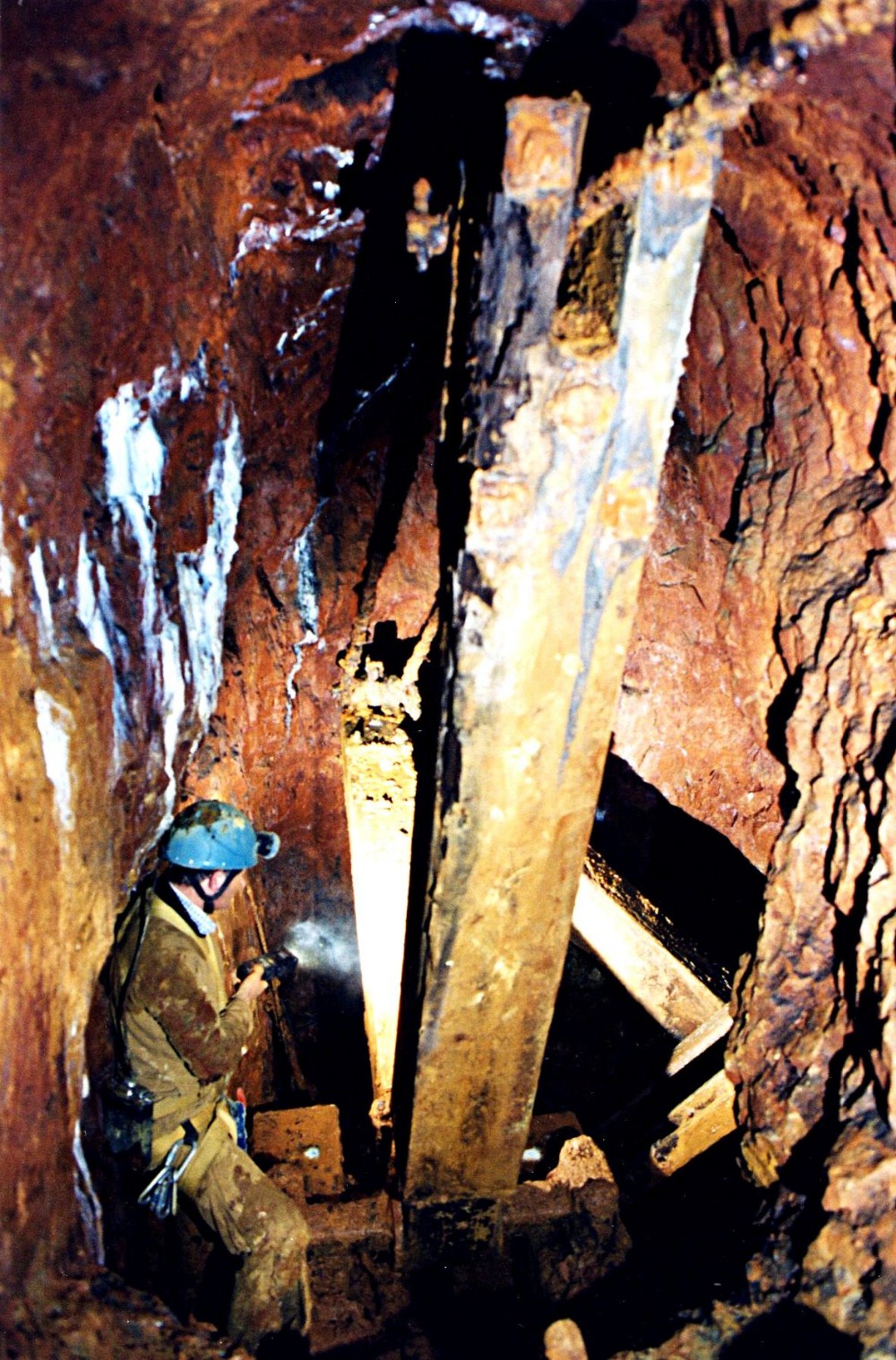 This arrangement is still in situ but was damaged by a fall of material in Endeans Shaft in the 1990s.