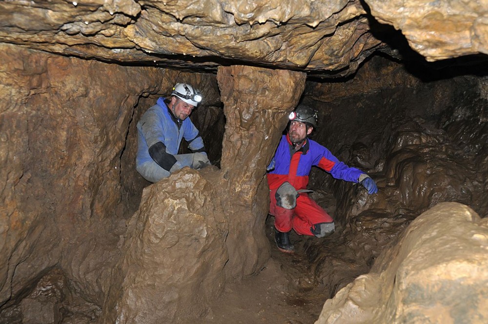 The pillar in the entrance series of the Ogof. It was near here a Roman coin hoard was found in the 1960s.