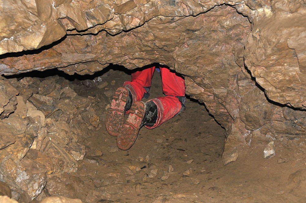 Starting the tight crawl from the Shaft Chamber throught the Shaft Series to the Burial Chamber.