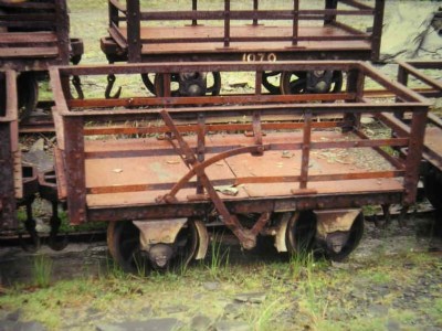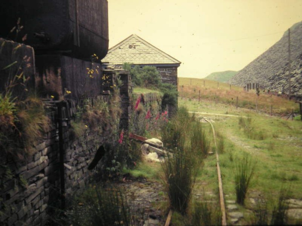 Transhipment yard at foot of Llechwedd incline. Standard gauge main line into Blaenau in background, circa 1979.