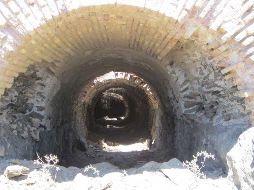 View looking down the left hand loading tunnel illuminated by sunlight through the loading chute holes