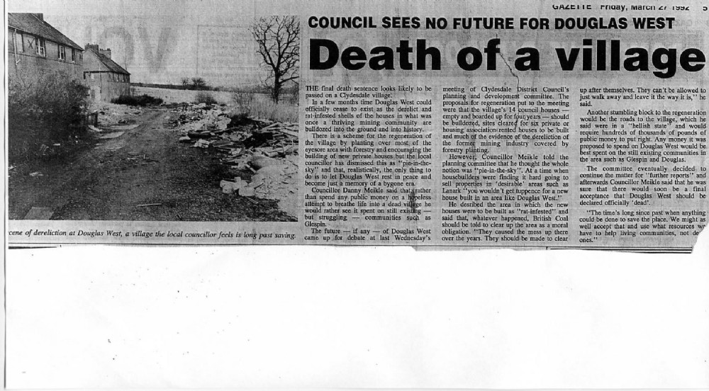 A newspaper clipping reporting the final death of Douglas West miners houses.