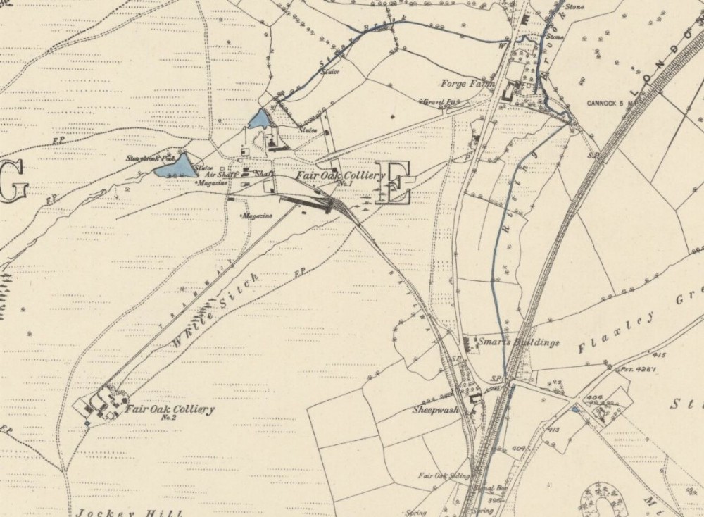 Map showing location of No1 & No2 collieries, tramway connecting the two, and link to main line.