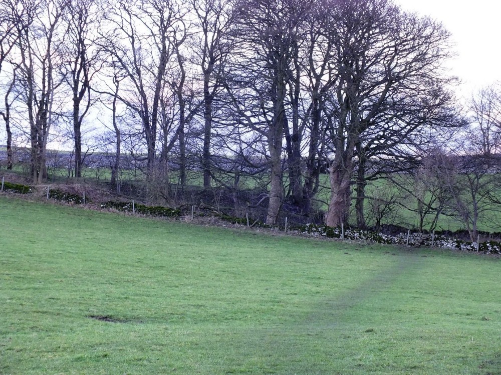 Through the trees there is flat topped square feature visible, possible reservoir or buddle dam