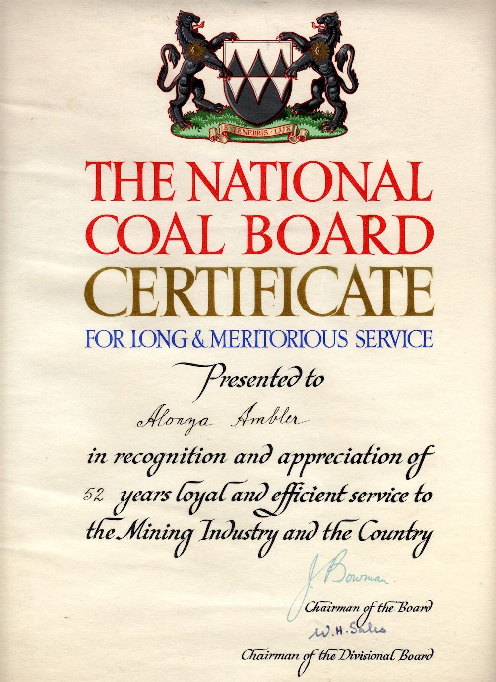 Alonza Ambler (b 1891) served at Wath Main from leaving school at the age of 14 to retirement in 1956. Both his sons (Donald and Jack) were miners at the nearby Manvers Main Colliery.
