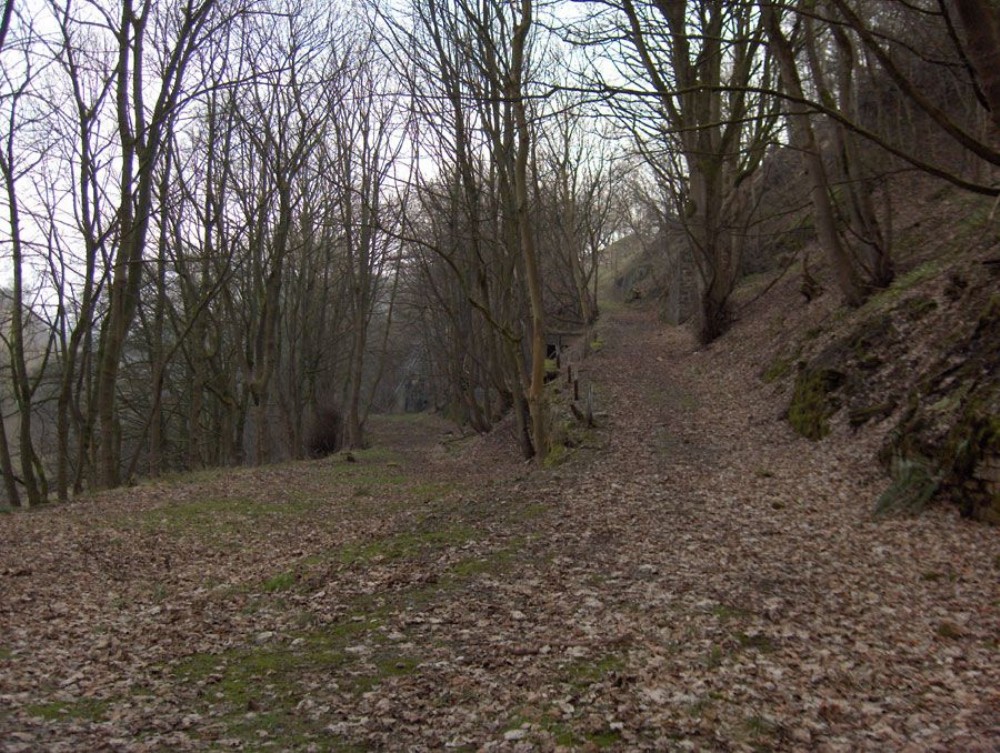 The main railway track went straight ahead with a siding for the kilns and over a bridge to join with the main line on the other side of the dale. The incline runs up to the quarry and the charging holes for the kilns, whilst the main building is behind the point of view.