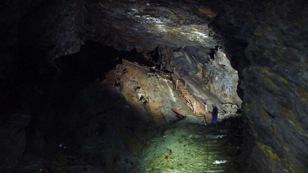 The manway which serves the BVI descends through chamber 1 west, a vast cathedral- like space where sounds seem to echo forever. Below floor B it proceeds down though a more constricted space to terminate on C floor.