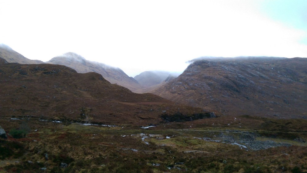 Looking south-east onto the Fee Donald mine workings from the location of one of the vertical shafts.