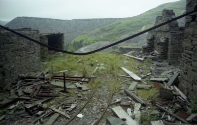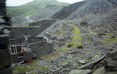 You can see the actual Tuxford west tip with perched on it the erstwhile Maenofferen (Rhiwbach Tramway avoiding) Incline drumhouse (1920-28). Just visible (with chimney) above the Tuxford drumhouse is the Diffwys Floor 4 mill ruins.