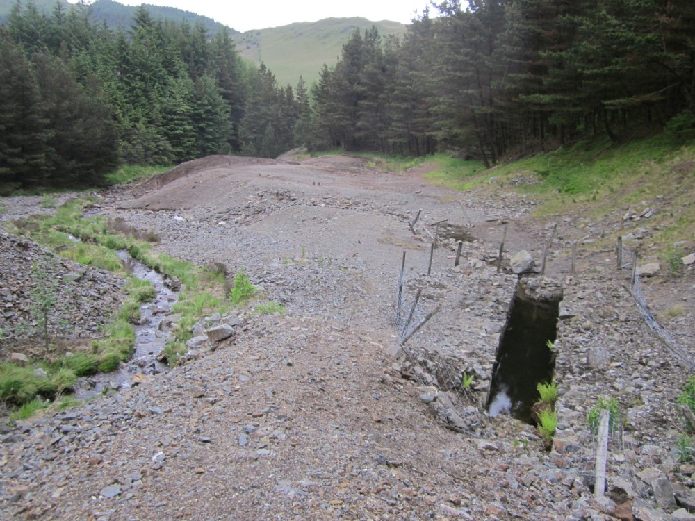 View to the east from the end of the linear waste tip showing the lower (40') wheelpit and the tailings