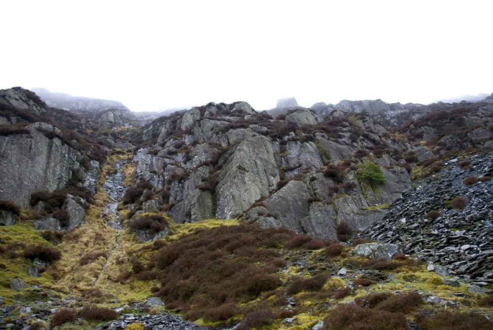 Looking up the course of the upper incline/sledway. Accounts state that this was not an incline, but rather wagons were lowered down a wooden track. The incline is extremely steep.