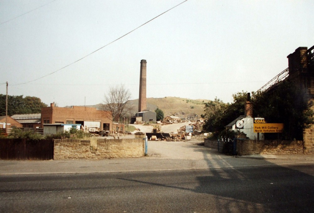 Changed scene at Park Mill. Upcast winding house & headgear gone....also, wheighbridge to the left & redundant motor vehicle workshop, to the far left. White building behind the sign was gardeners shed...
