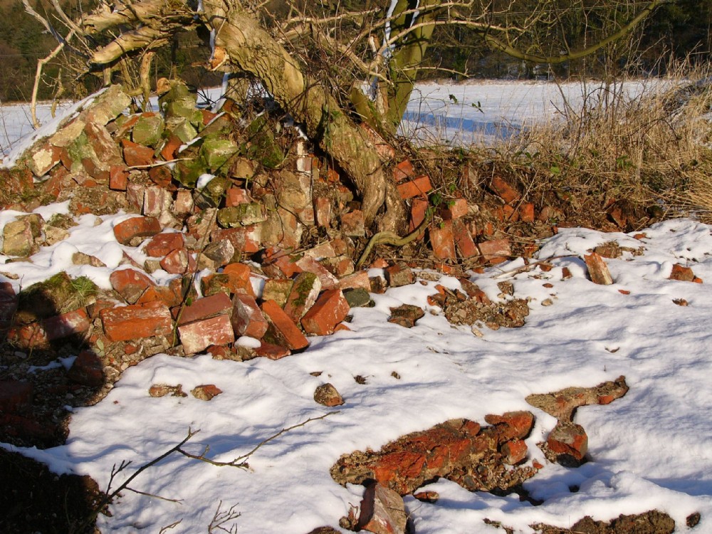 A small magazine existed near the drift for issuing gunpowder daily. These scattered bricks are all that remains.