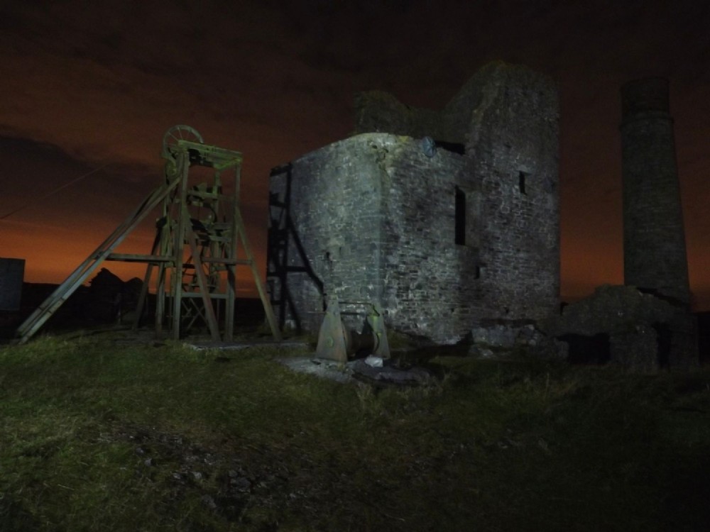 View of Magpie Engine House, Headgear & Chimney light painted from two side to cast the shadow of the headgear on to the engine house.