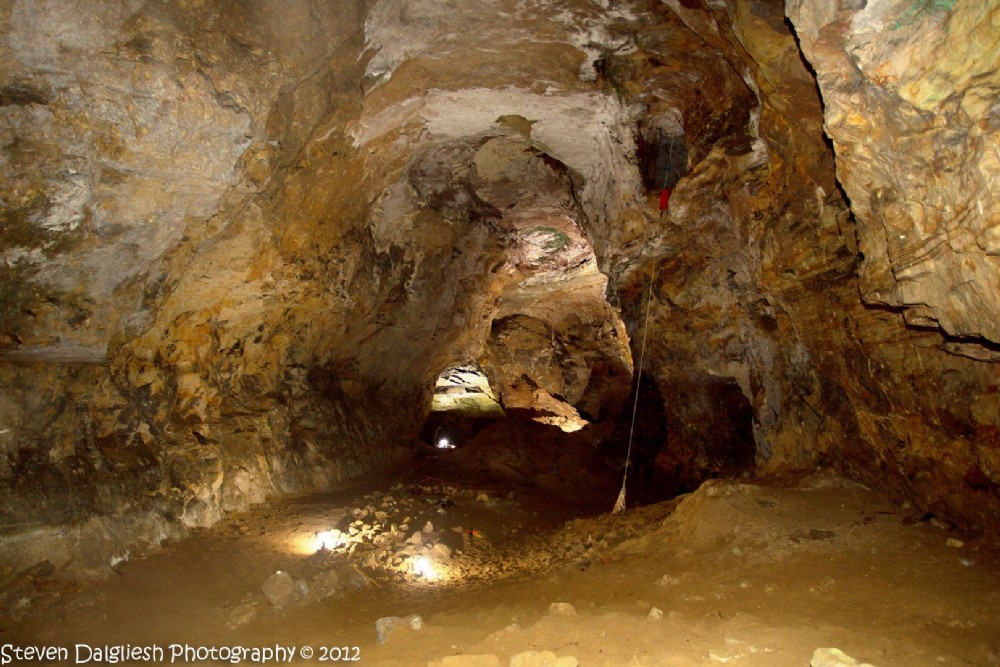 This image is of the first chamber in West Mine that you come to from the entrance, lighting was from multiple flash guns, a large strobe and some static lighting. From where I have taken the picture to the very bottom is about 200 ft.