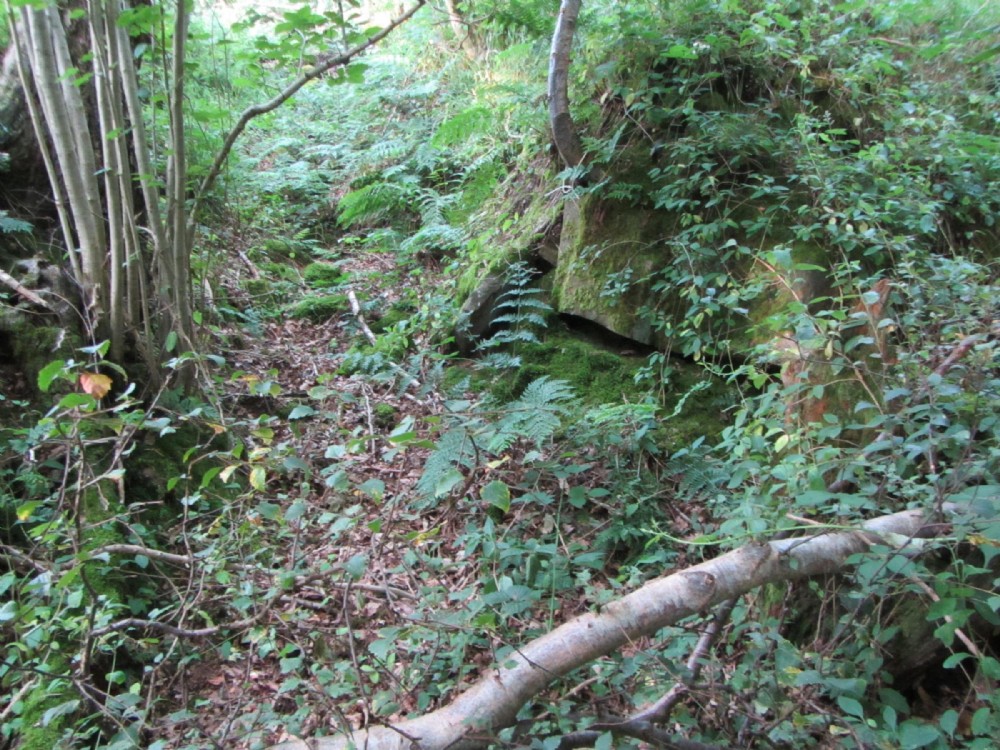 The main level (SK018480) taken from the tramway which linked the levels to the inclined tramway. It has been run-in for a long time. There are no accessible workings.