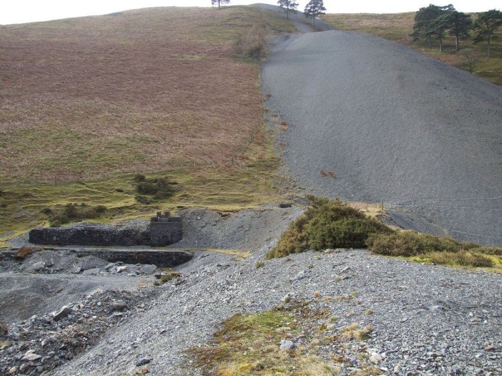 The run in deep adit is behind the gorse, the open middle adit at upper spoil tip