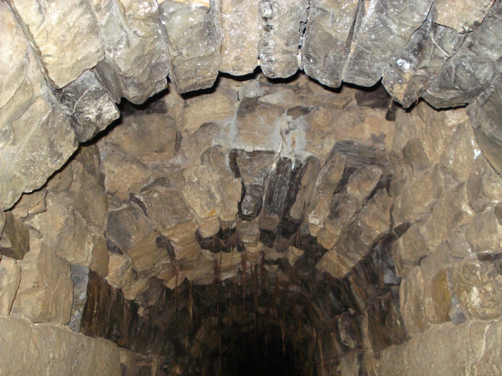 Bottom of the small climbing shaft blocked at surface - note the large limestone lintels on each side supporting the ginging
