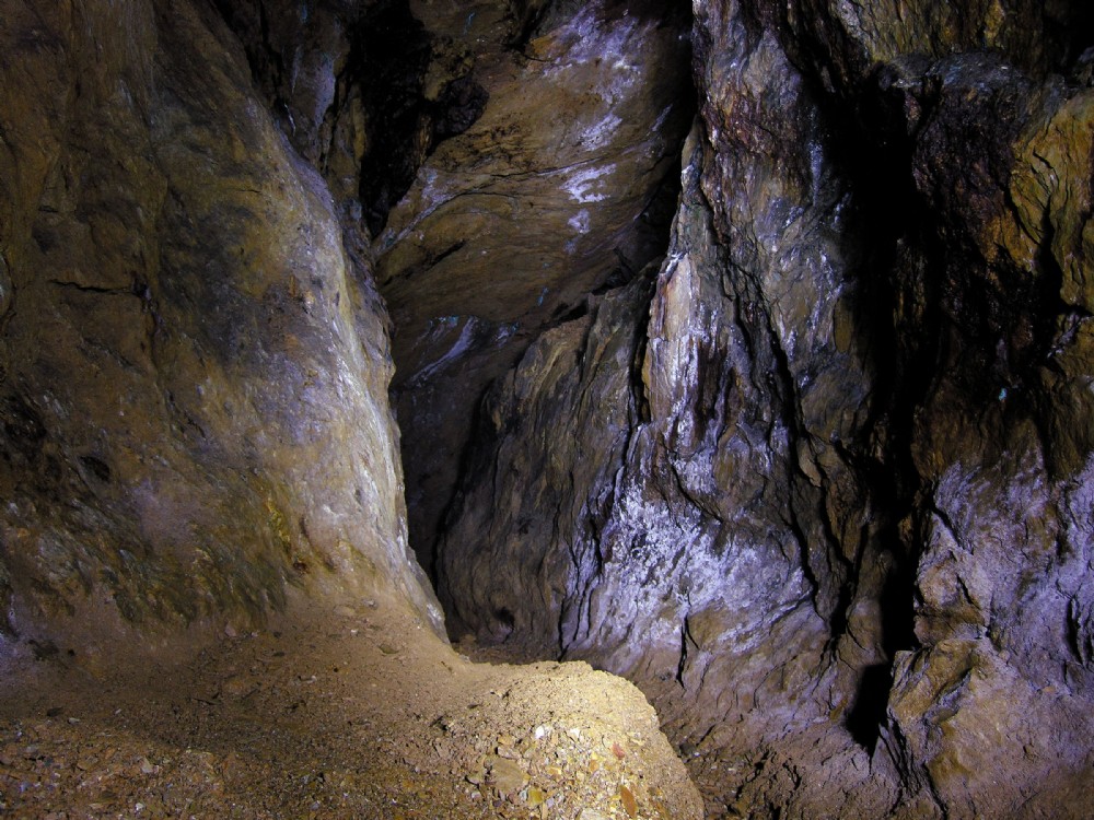 A shot of a massive stope, although it does not give any idea of scale. Above a vertical wall proved impossible to climb in the wet, although suggested more floors above, below were at least three floors to the bottom of the shaft.