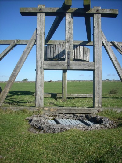 Grilled shaft within coe adjacent the wooden gin. Oct 2010.