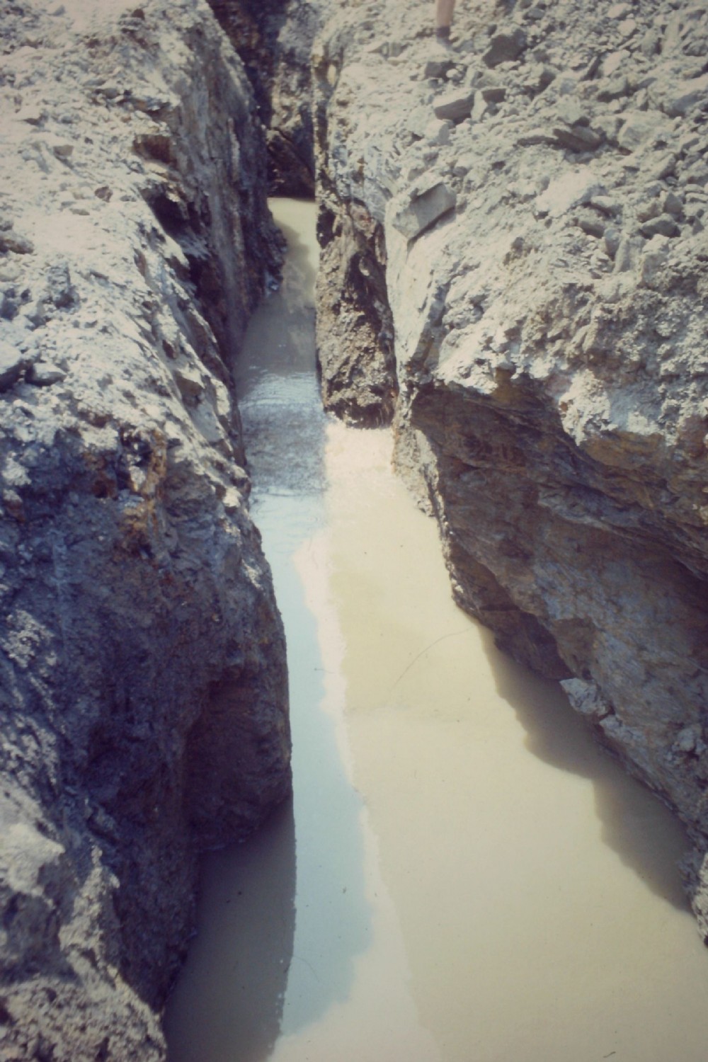 looking along the stope/adit level - in places the water depth was deeper than equipment to hand at the time (ie more than about 8m deep)