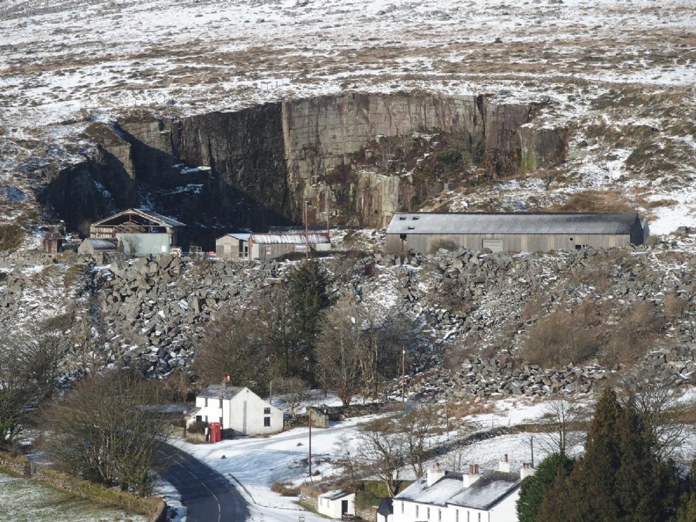 A closer view than the previous photograph. Dilational joints paralleling the topographic surface amd caused by pressure release are clearly visible and are a common feature in Devon and Cornwall granite quarries.