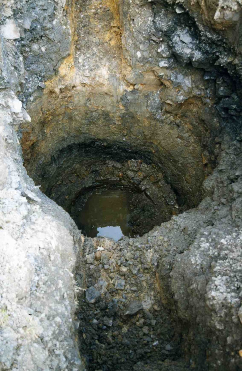 This is a view of the shaft after i told the JCB driver to see if there was a bottom to the hole. The reach of the JCB arm was 18 feet and there was the start of the stone lining of the shaft!