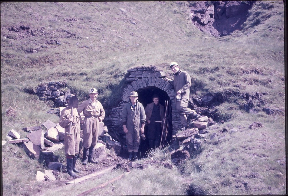 This view was taken on 19 June 1966.Eric Richardson had arranged the removal of a roof fall just inside the level entrance and this was the first visit to the mine. Not far from the entrance was a wagon chassis and a rope noose. Exploration got to the first junction where another roof fall held up progress.